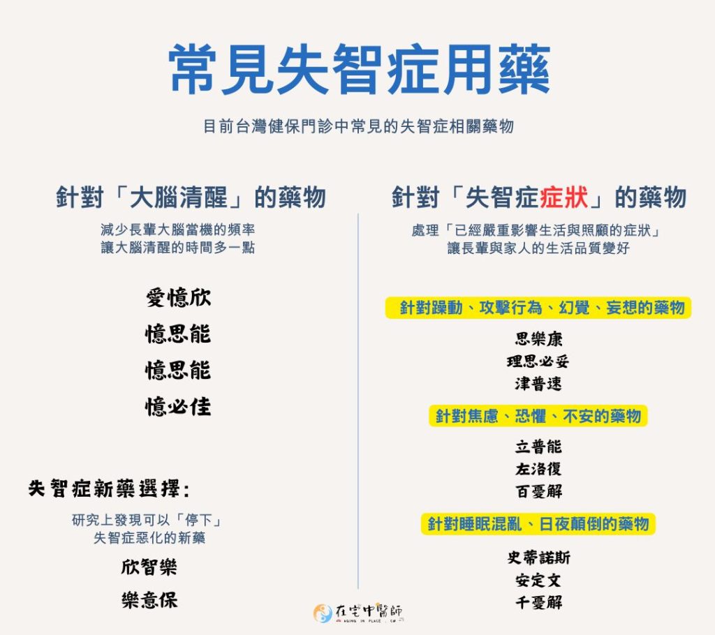 所以這就是為什麼你會看到醫師除了失智症藥物以外,